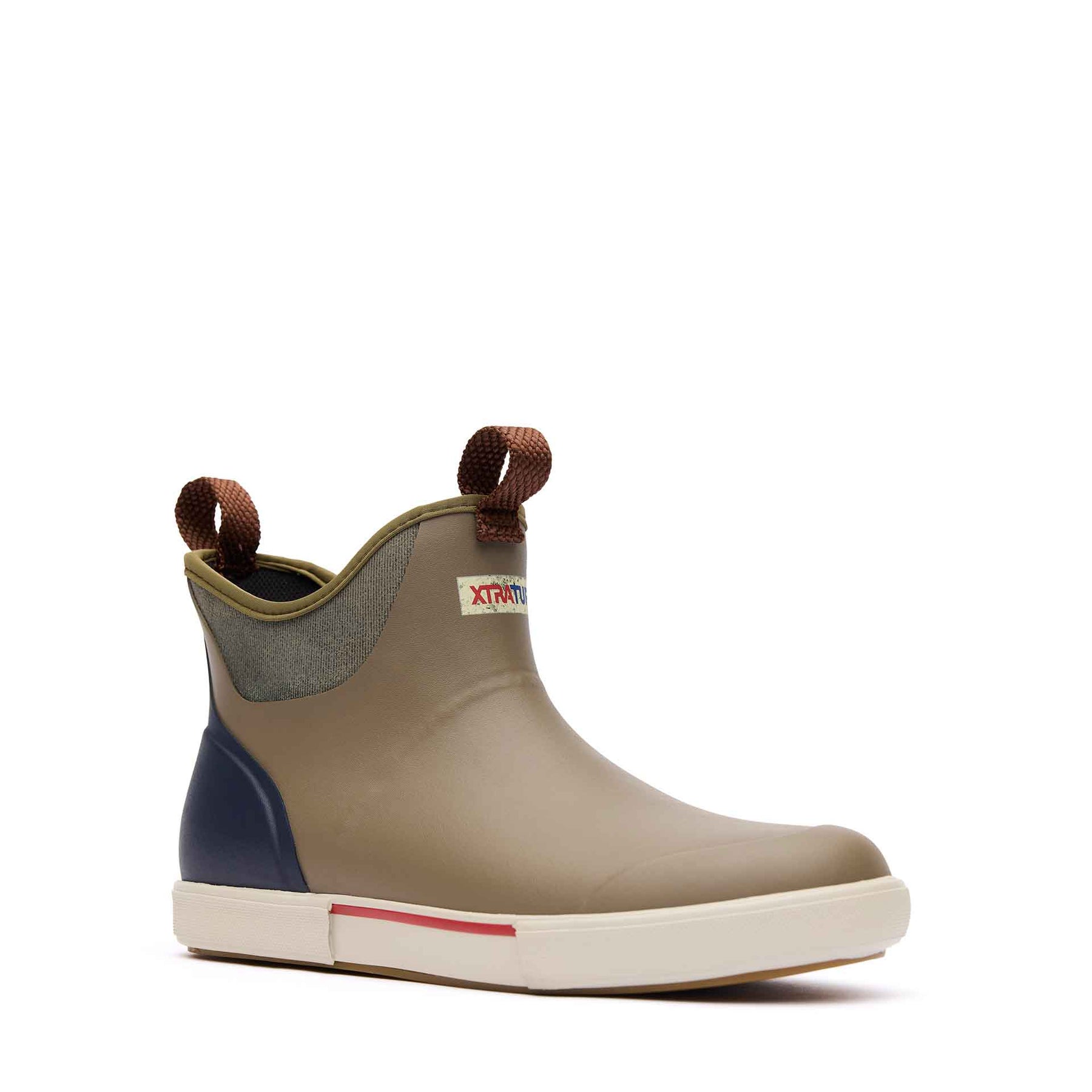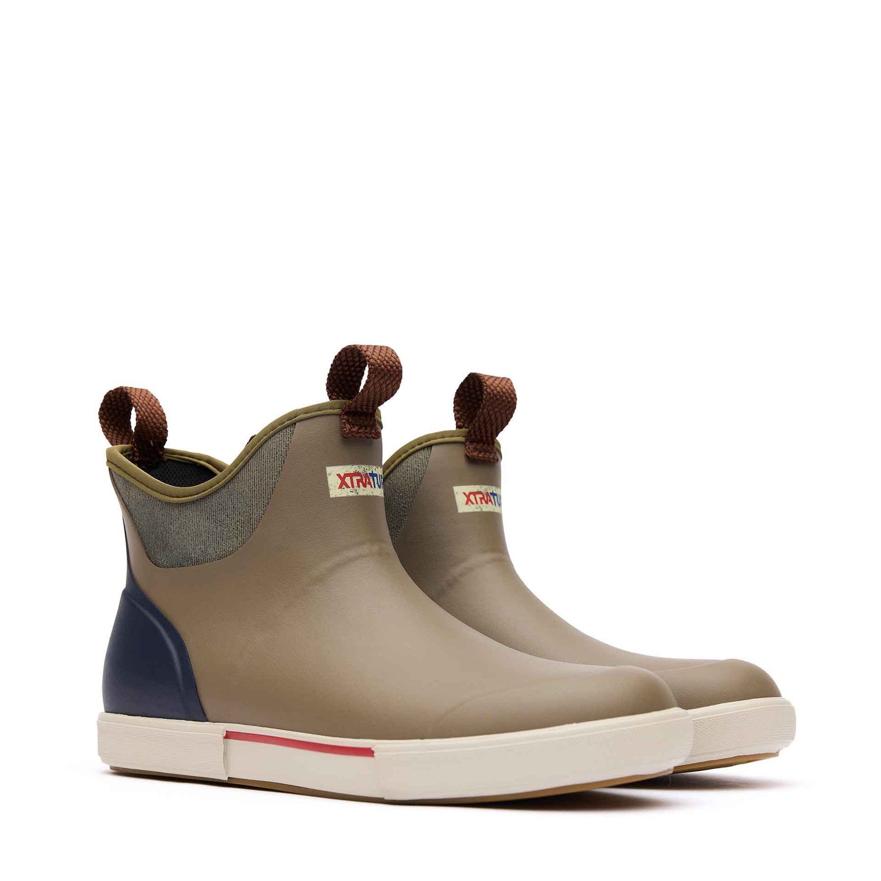 XTRATUF® Deck Boots have been crafted specifically for sport and recreational fishermen. Anglers are athletes, and like any athlete, they need the best footwear to help them perform at a high level. Handcrafted from natural rubber, we have created a lightweight design with the same high traction chevron outsole found in our Legacy boots. This performance men's ankle boat boot is ideal for any on the water athlete looking for protection with slip-on-and-go styling.