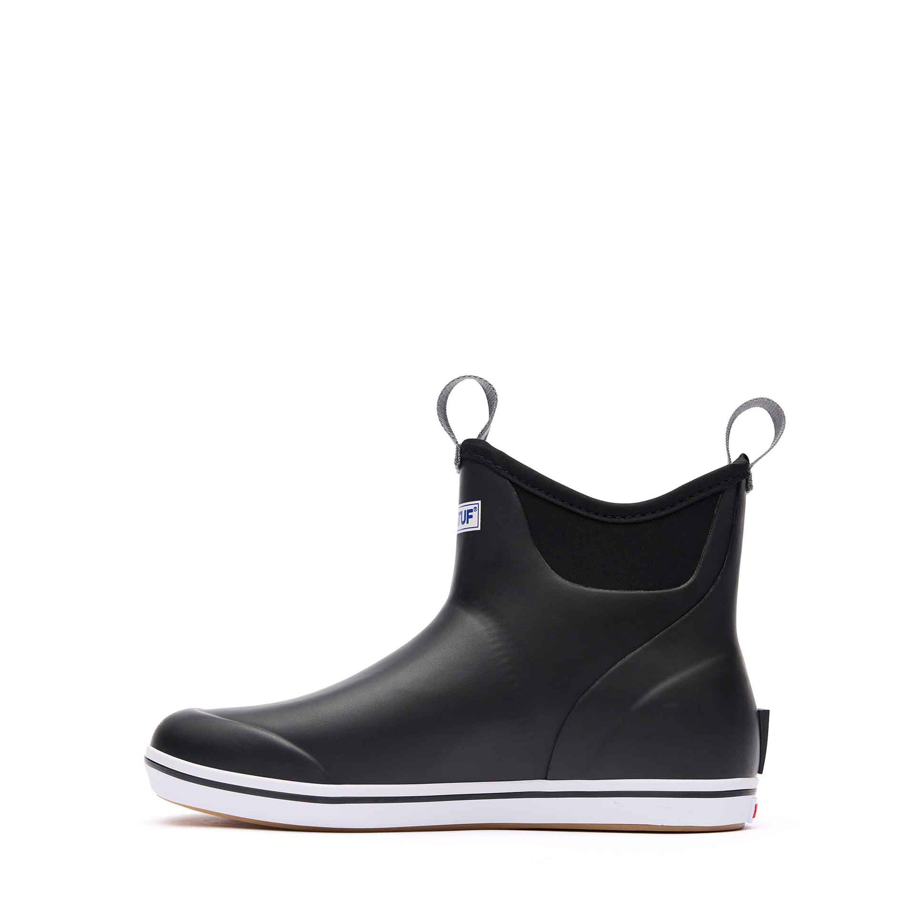 I first purchased a pair of ankle deck boots for myself and told my husband how comfortable and great they were. He was looking for a boot to wear in inclement weather and walking our dog(we get a lot of rain in southeast Texas.) He recently worn them while cleaning our slanted, metal roof and said they were like having stoppers on his feet,no slipping or sliding. He'll probably be getting another pair to keep at the lake for fishing. We're both sold on these.